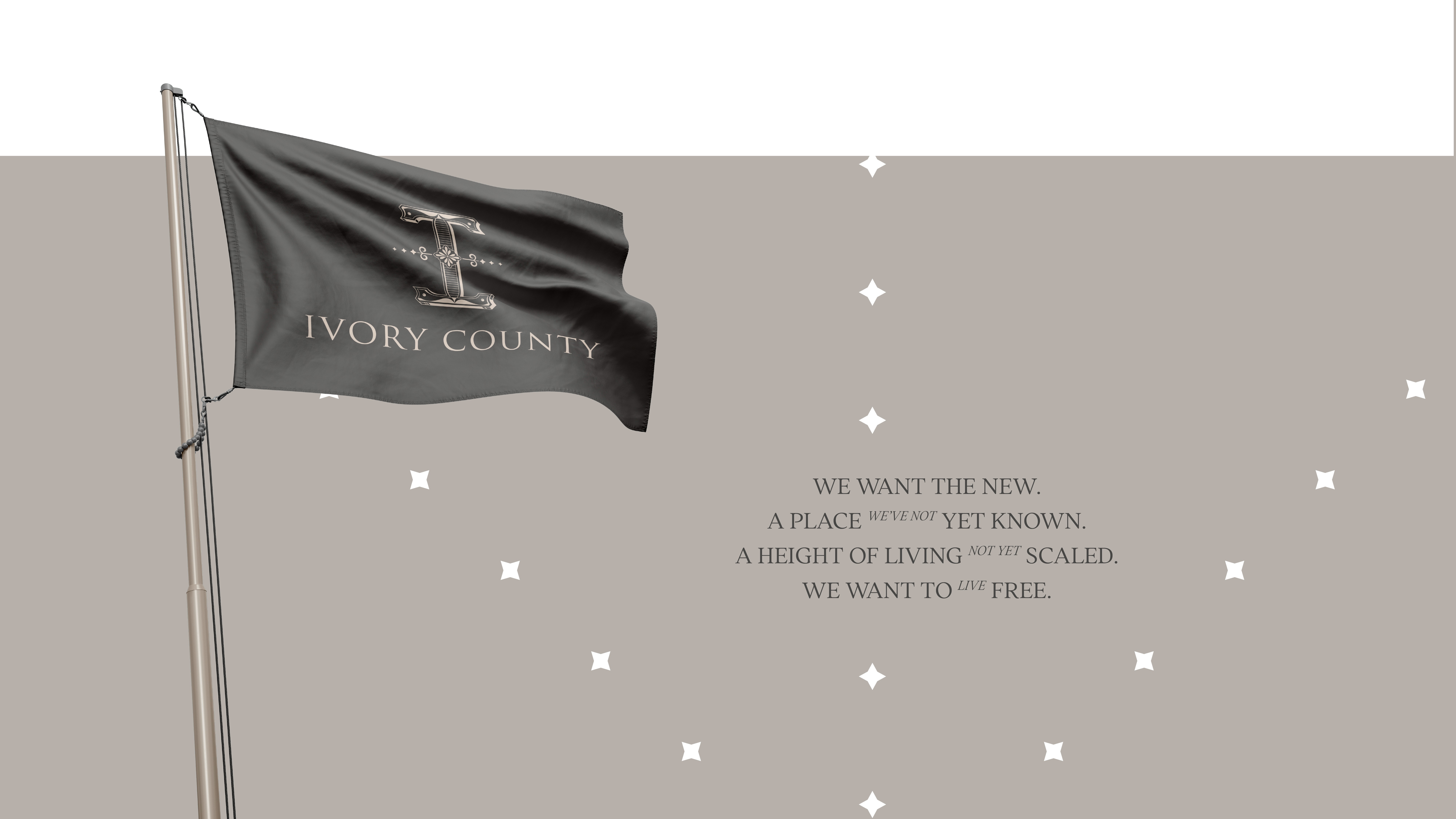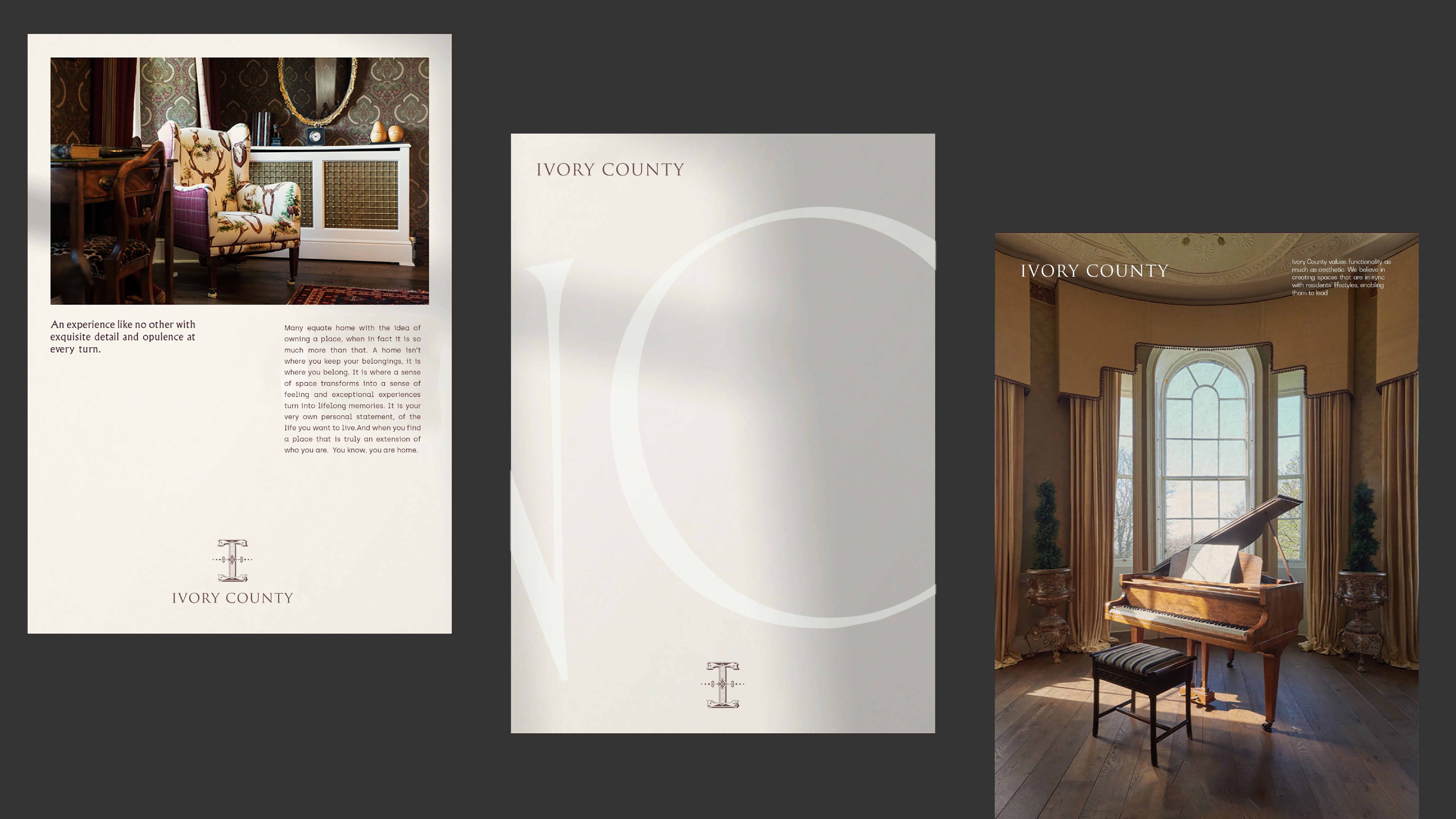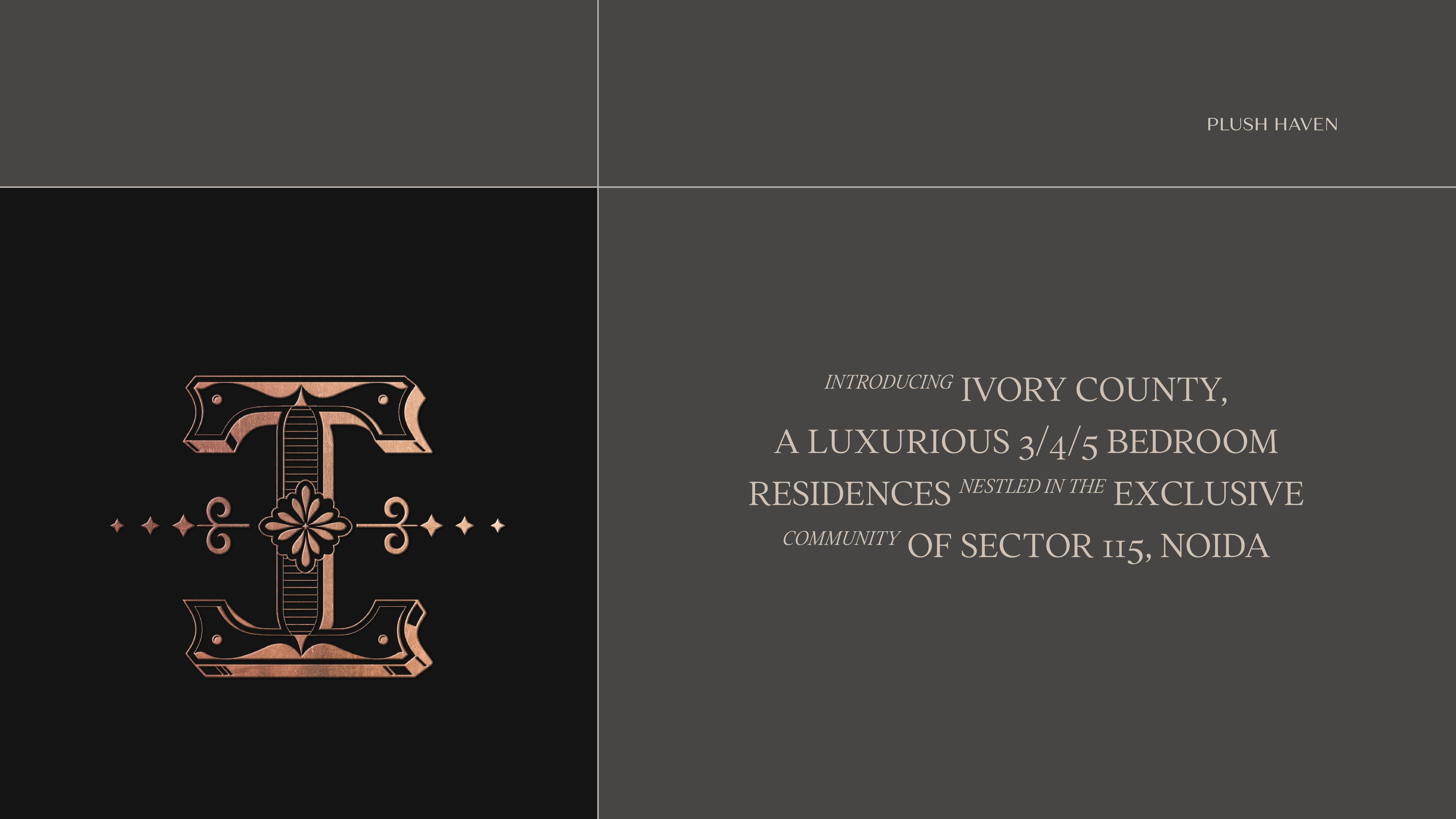 The brand identity draws inspiration from the project's commitment to creating spaces of enduring value and sophisticated living. At the heart of Ivory County's identity lies a meticulously crafted 'I' emblem that embodies the essence of aristocratic living. The monogram draws inspiration from royal insignias, featuring balanced proportions and refined details that speak of timeless elegance.