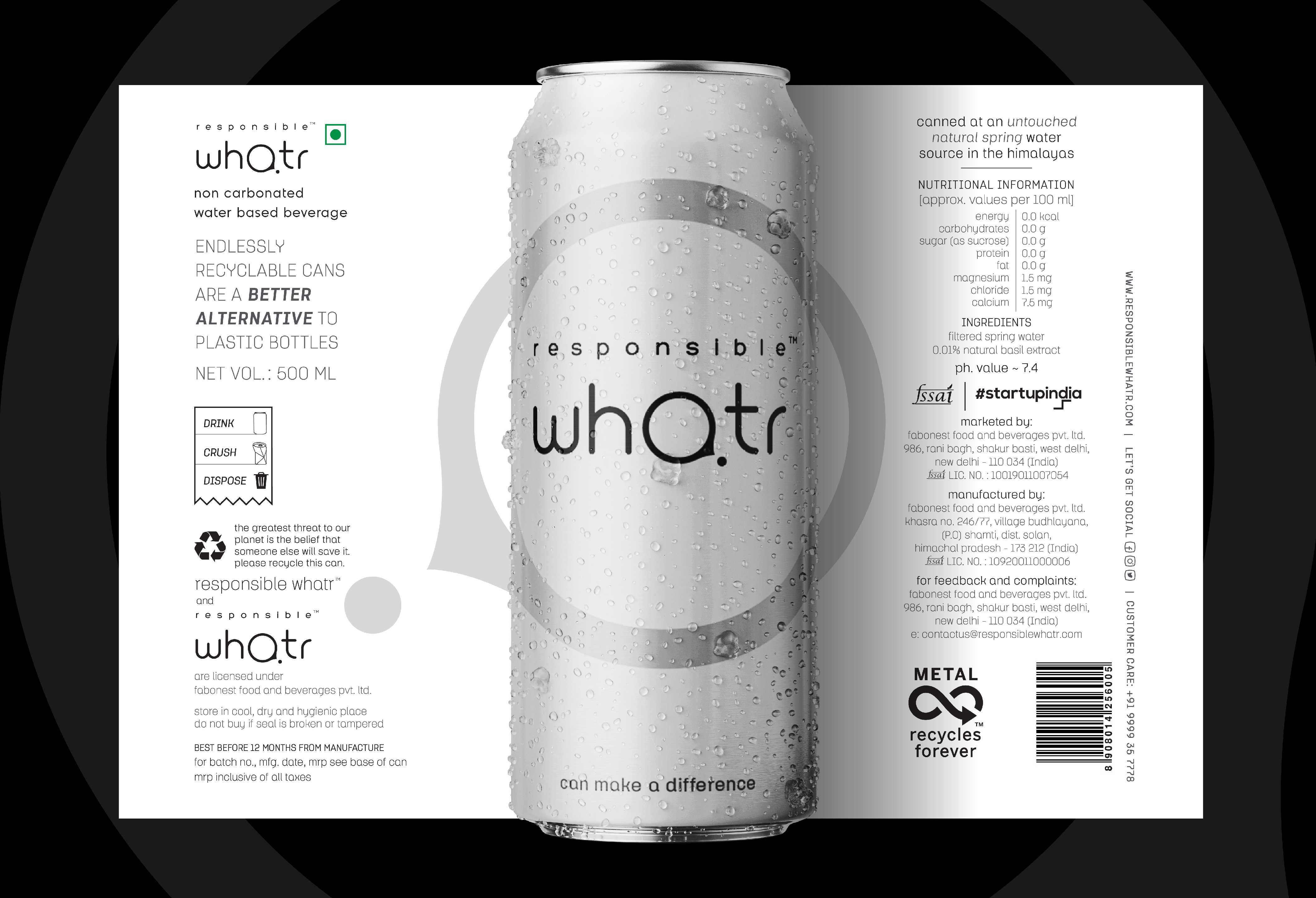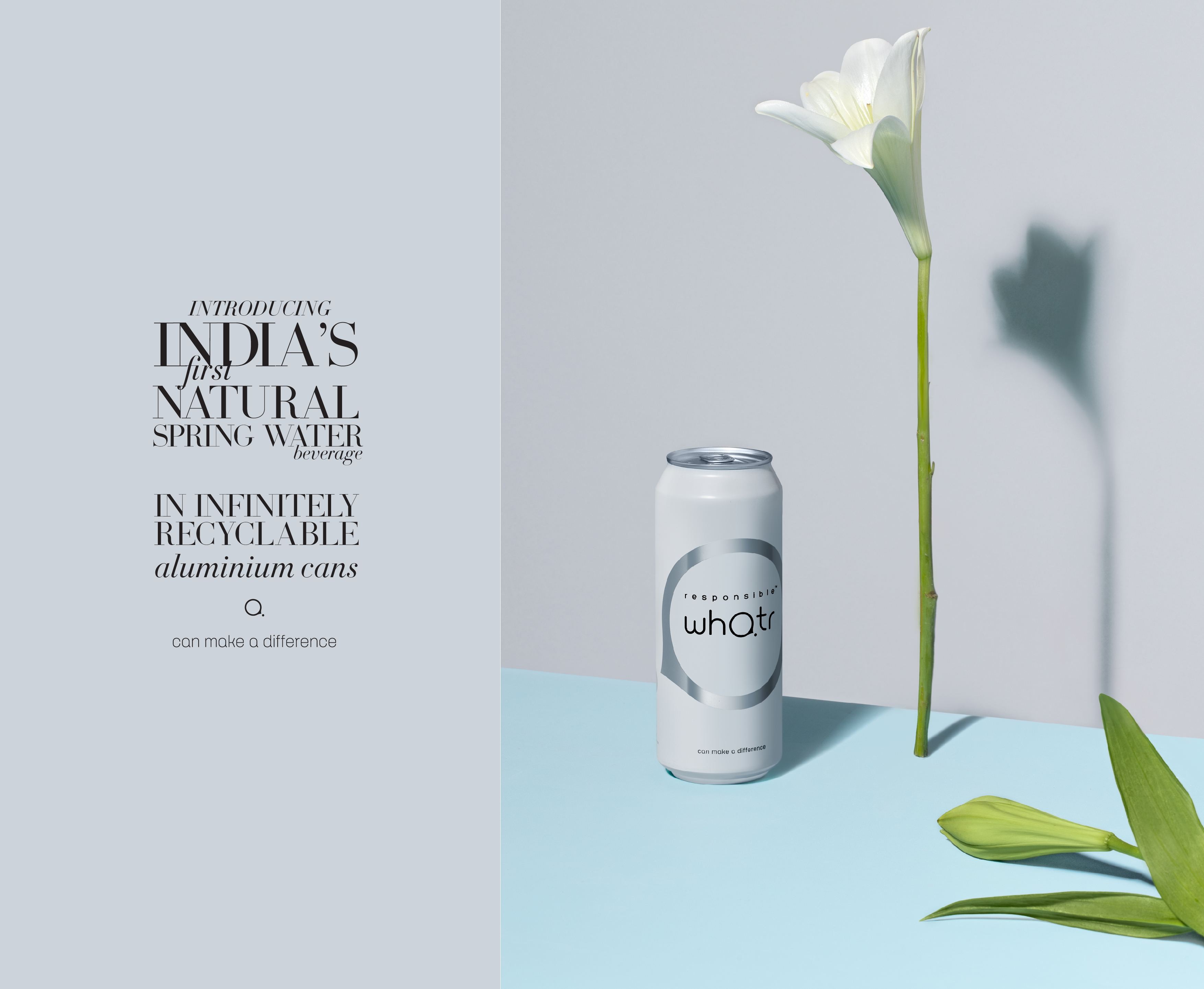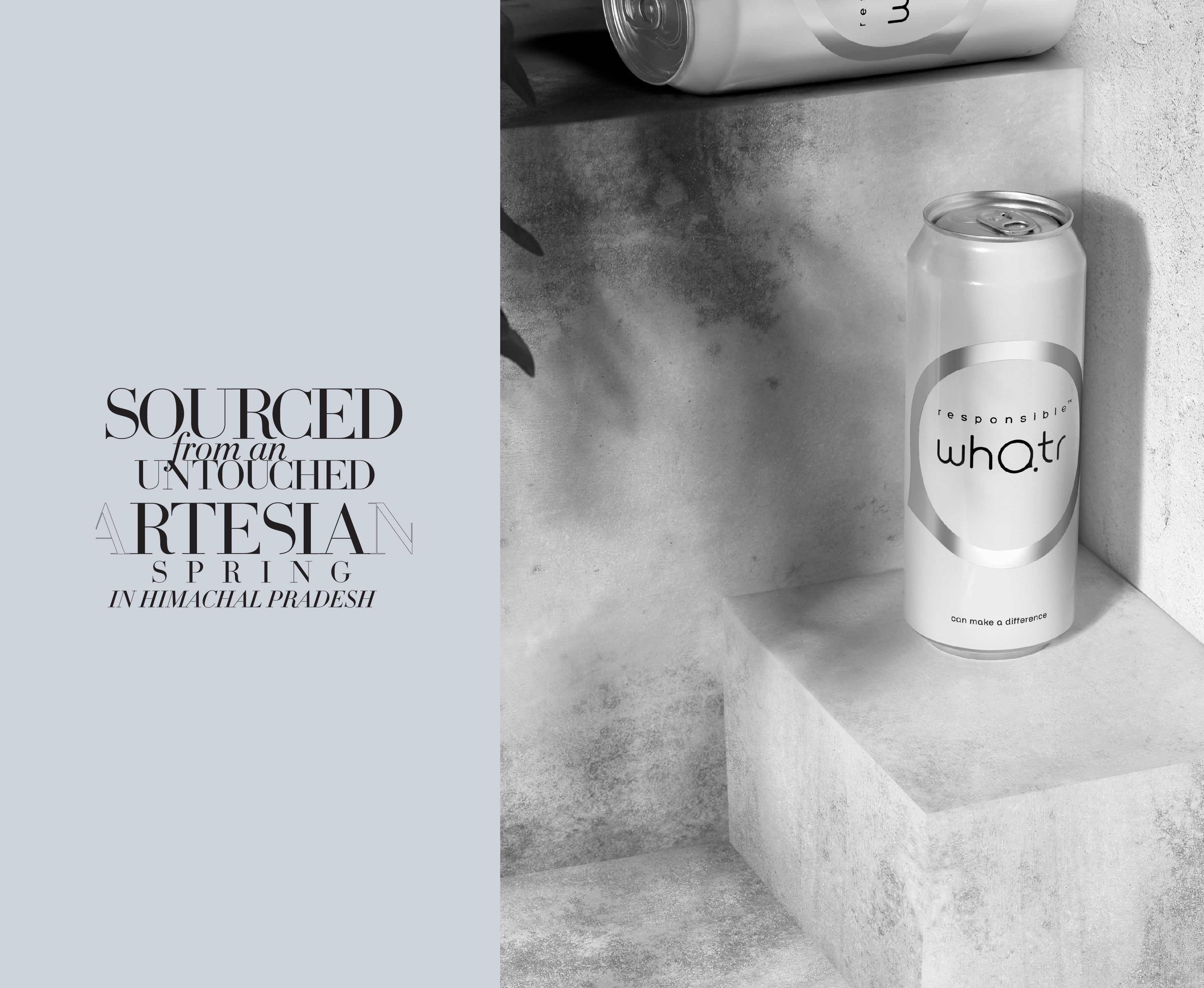 Responsible Whatr is India’s first natural spring water in recyclable aluminium cans. We worked with the young team of Responsible Whatr and the eight-month-long engagement was 4:Ds first attempt at developing a premium consumer product right from scratch.